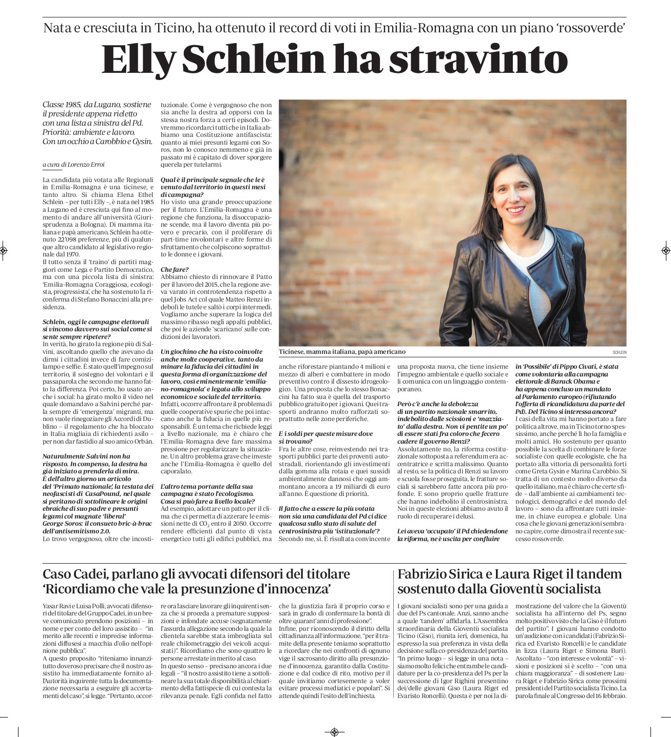 La candidata più votata alle Regionali in Emilia-Romagna è una ticinese, e tanto altro. Si chiama Elena Ethel Schlein – per tutti Elly –, è nata nel 1985 a Lugano ed è cresciuta qui fino al momento di andare all’università (Giurisprudenza a Bologna). Di mamma italiana e papà americano, Schlein ha ottenuto 22’098 preferenze, più di qualunque altro candidato al legislativo regionale dal 1970.