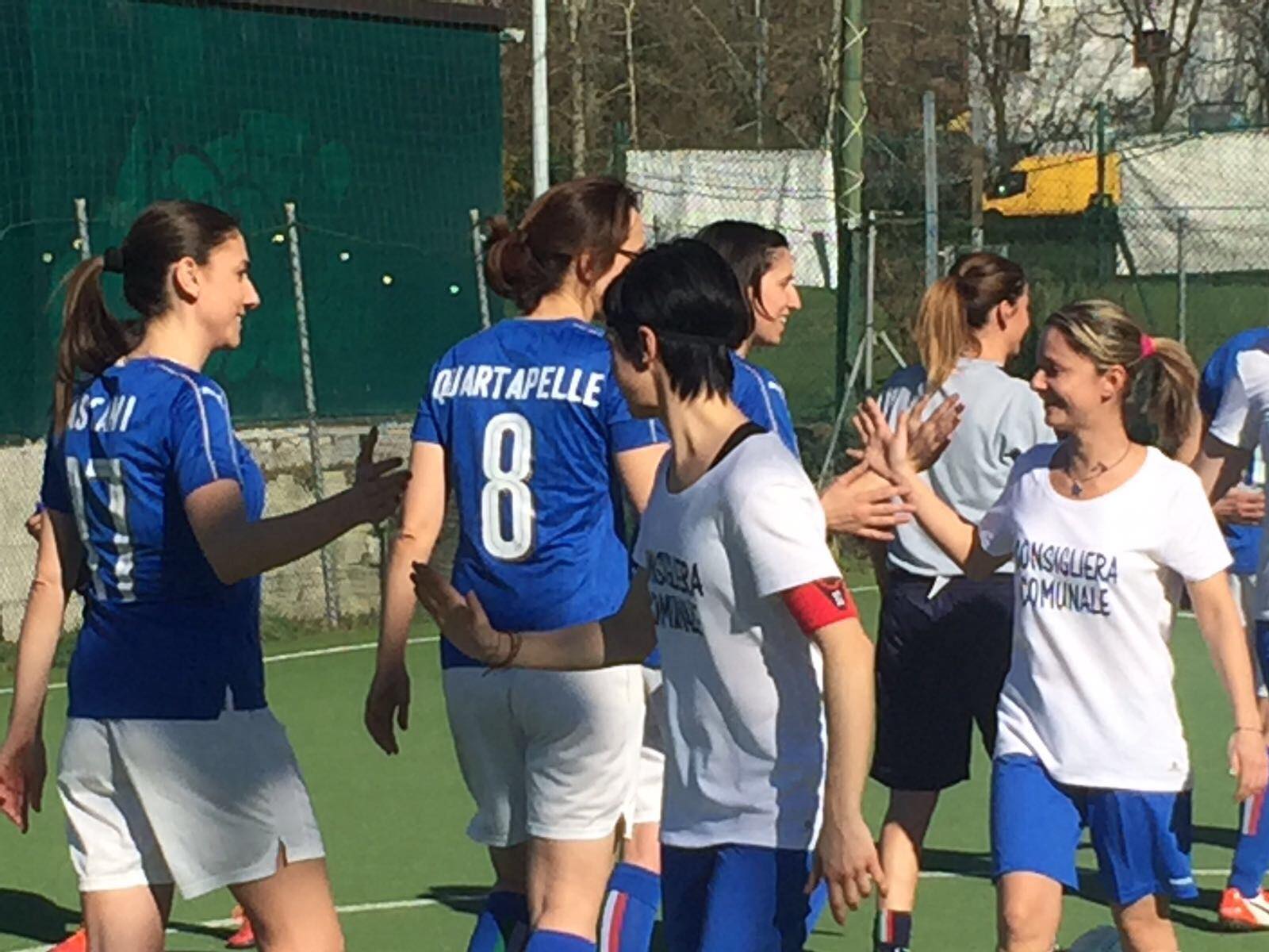 Una bellissima partita per la parità, oggi, tra la Nazionale delle Parlamentari – AzzurreParl e le Consigliere Comunali di Bologna, organizzata per la giornata internazionale della donna. È finita 10 a 3 per noi, ma le Consigliere si sono difese benissimo, il merito maggiore va alla nostra allenatrice Katia Serra che in porta si è rivelata una saracinesca